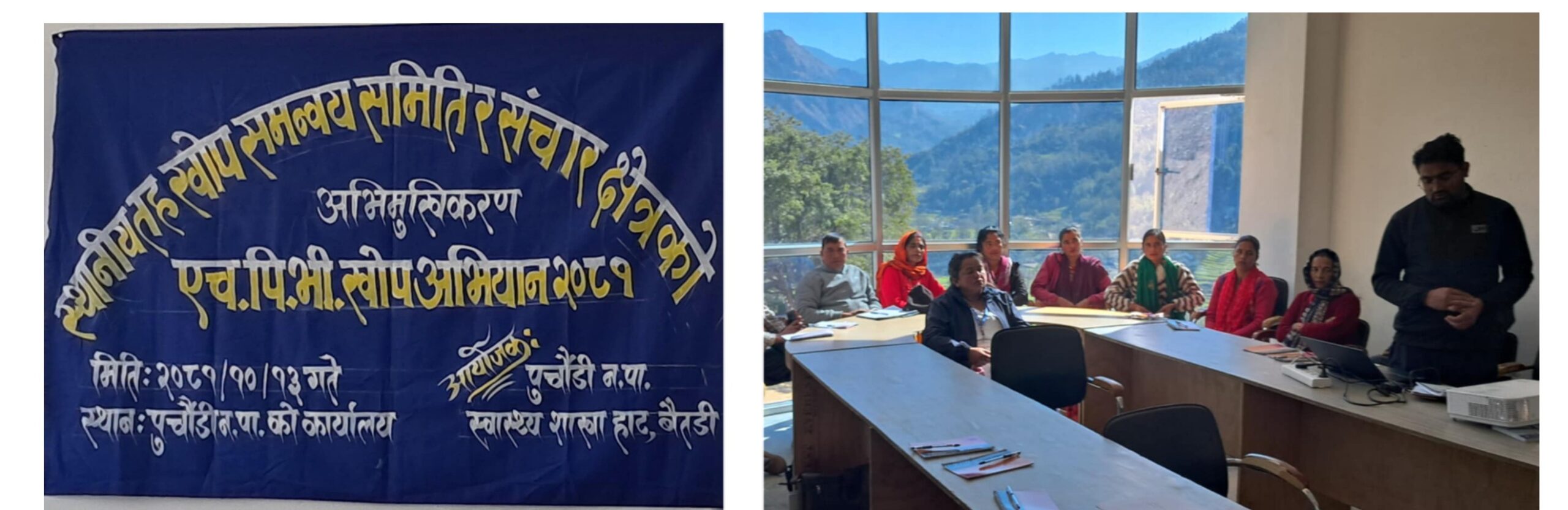 हरि साँउद, पुर्चौडी सम्बाददाता बैतडी,बैतडीको पुर्चौडी नगरपालिकामा पाठेघरको मुखको क्यान्सर गराउने ह्युमन प्यापिलोमा भाइरस (एचपीभी) विरुद्धको खोप अभियान सम्बन्धि अभिमुखिकरण कार्यक्रम सम्पन्न भएको छ।
