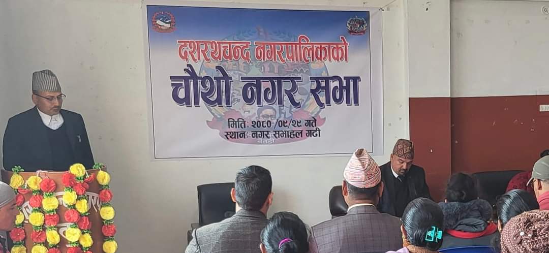 बैतडी -बैतडीको दशरथचन्द नगरपालिकाको चौथो नगरसभा सम्पन्न भएको छ । नगरसभाले विभिन्न ८ ओटा ऐन तथा कार्यविधिहरु पास गरेको छ । नगरसभाका अध्यक्ष तथा नगरप्रमुख पुष्कर राज जोशी लख्खाभाइले प्रस्तुत गरेका कार्यविधि तथा ऐनहरु सभाले पारित गरेको हो ।