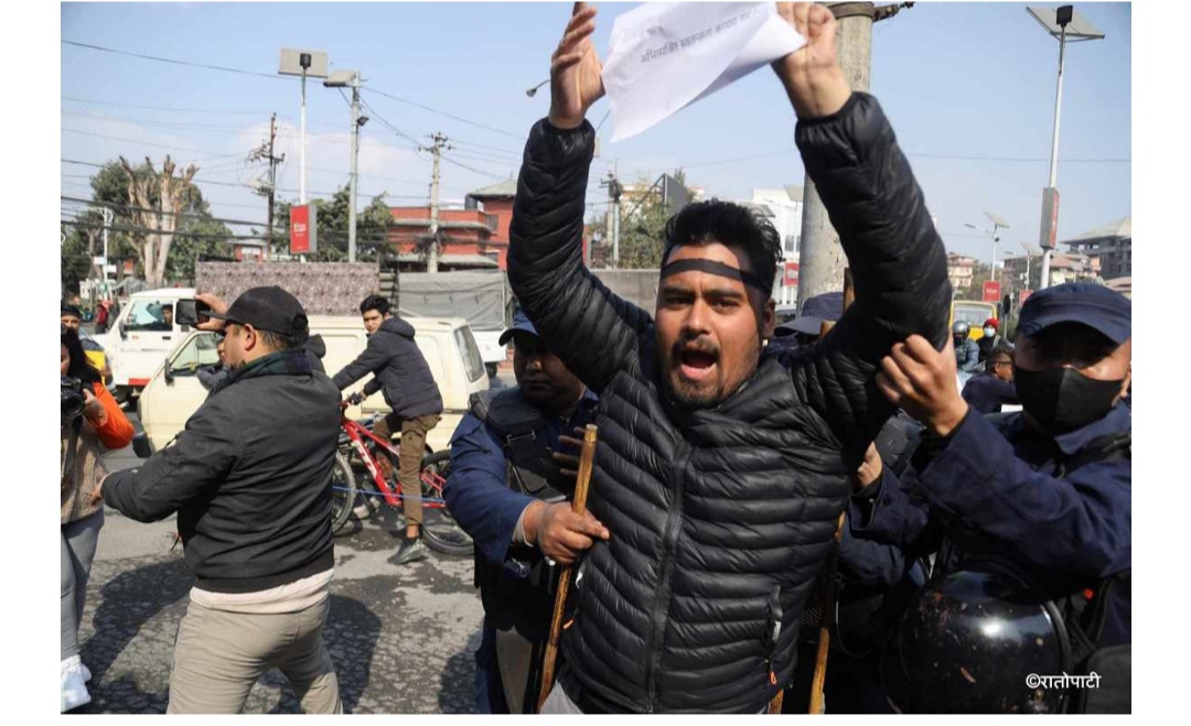 काठमाडौँ । काठमाडौँको माइतीघरमा लगाइएको निषेधाज्ञा हटाउनुपर्ने मागसहित सत्तारुढ दल नेपाली कांग्रेसको भ्रातृ संगठन नेपाल विद्यार्थी संघले आइतबार विरोध प्रदर्शनको आयोजना गरेको छ । संघको काठमाडौँ जिल्ला कार्यसमितिले निषेधित क्षेत्र घोषणा गरेको माइतीघर नै पुगेर विरोध प्रदर्शन गरेको हो ।