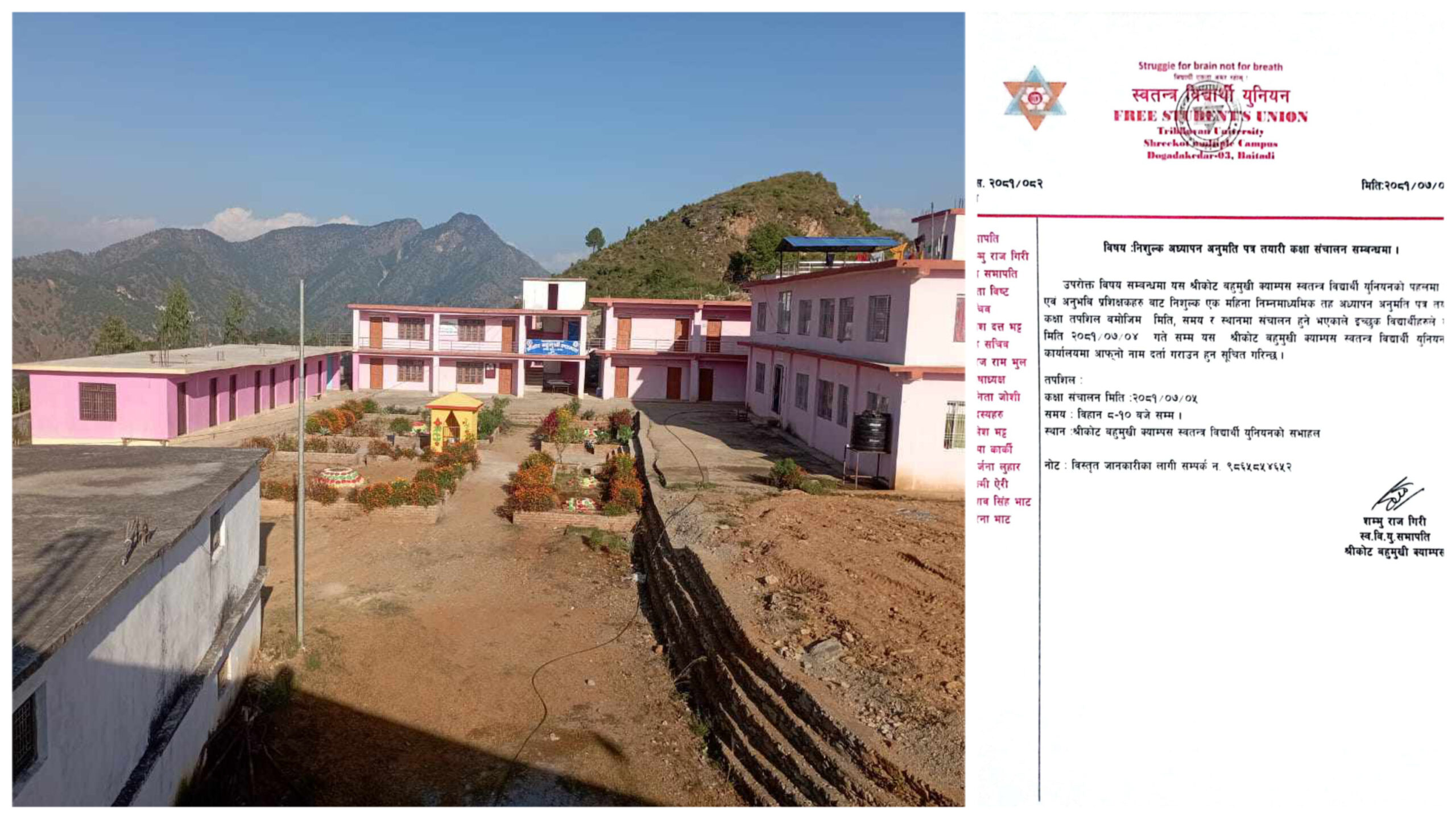 बैतडी -बैतडीको दोगडाकेदार गाउँपालिका वडा नं ३ खोचलेकमा रहेको श्रीकोट बहुमुखी क्याम्पसको स्वतन्त्र विद्यार्थी युनियनले निशुल्क अध्यापन अनुमतिपत्र तयारी कक्षा सञ्चालन गर्ने भएको छ।
