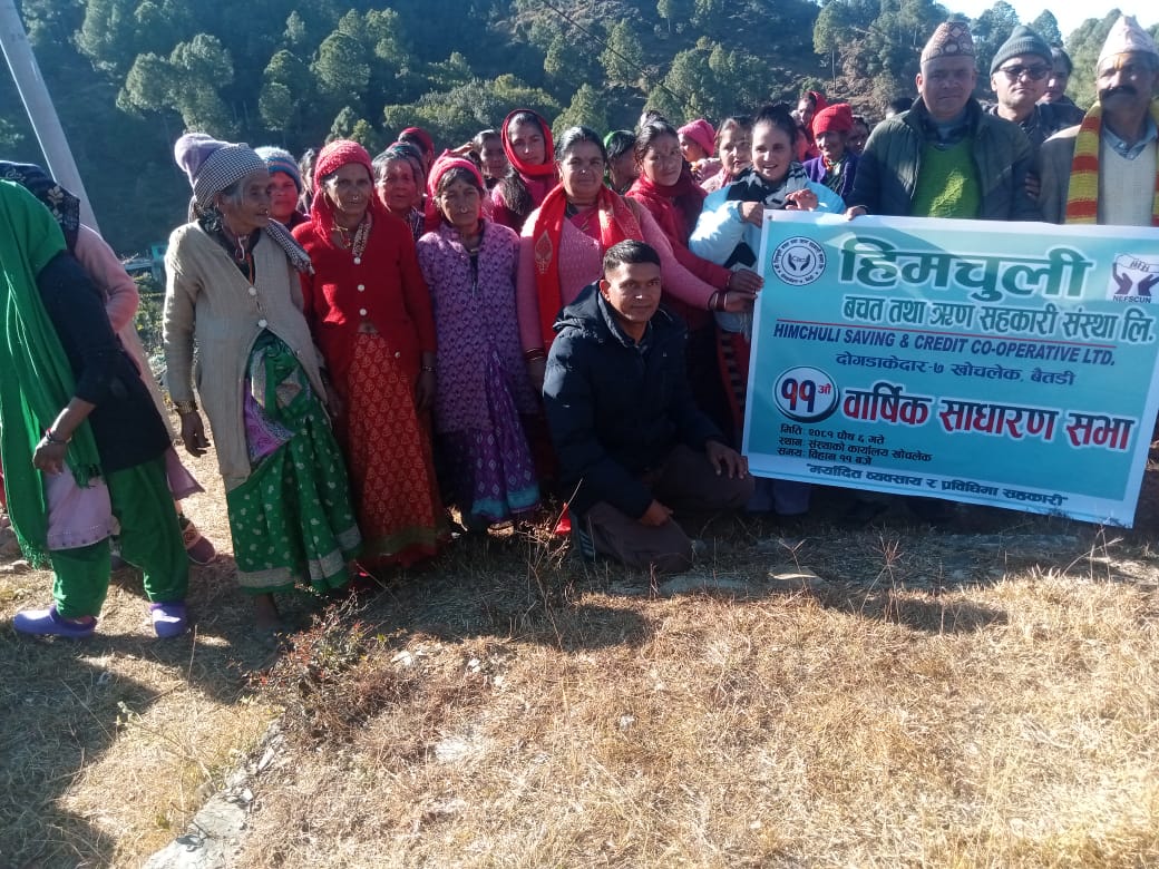 बैतडी। बैतडीको दोगडाकेदार गाउँपालिकामा रहेको हिमचुलि बचत तथा ऋण सहकारी संस्थाको ११औं बार्षिक साधारण सभा सम्पन्न भएको छ । शेर सिँह कार्किको अध्यक्षतामा सम्पन्न साधारणसभामा गाँउपालीका उपाध्यक्ष पार्वती ऐरी कार्की प्रमुख अतिथी रहेकी थिइन। कार्यक्रममा हिमचुलि बचत तथा ऋण सहकारी संस्थाका अध्यक्ष शेर सिँह कार्किले ३कराेड १२ लाख बराबरको आय व्यय प्रस्तुत गरेका थिए।हिमचुलि बचत तथा ऋण सहकारी संस्थामा ५ सय ८० जना सेयर सदस्यहरु रहेका छन।