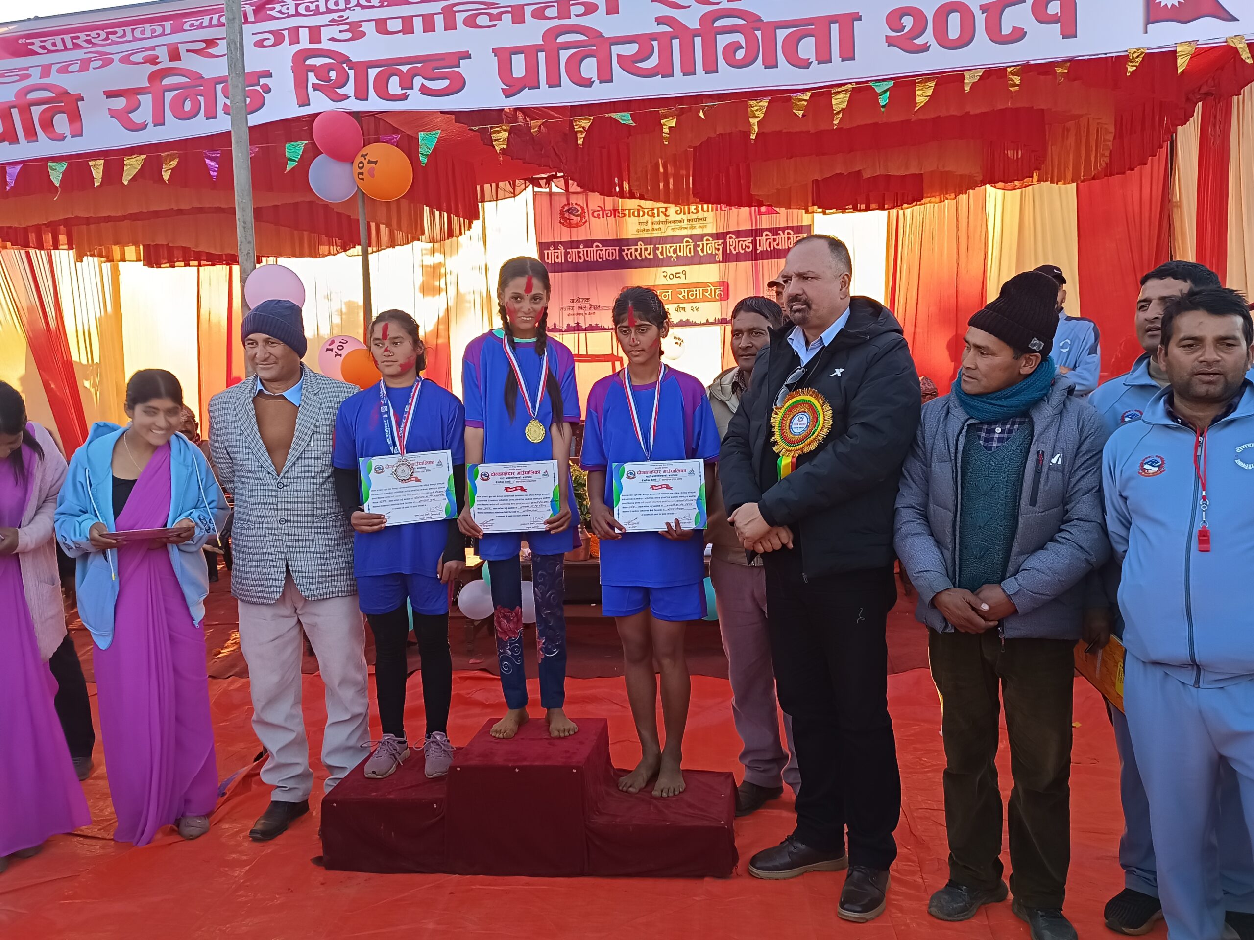 यस्तै छात्रा तर्फ भगवती मावि सित्तडकी अनिता जोशीले प्रथम, रौलेश्वर मावि मल्लाढीककी कौशीला कुँवरले द्वतीय र भगवती मावि सित्तडकी सोनम गोयलाले तृतीय स्थान हाँसिल गरेकी छिन् । दोगडाकेदार गाउँपालिका-७ लवलेकमा नयाँ निर्माण गरीएको खेलमैदानमा गाउँपालिकाले पालिकास्तरीय प्रतियोगिता आजबाट सुरु गरेको हो ।